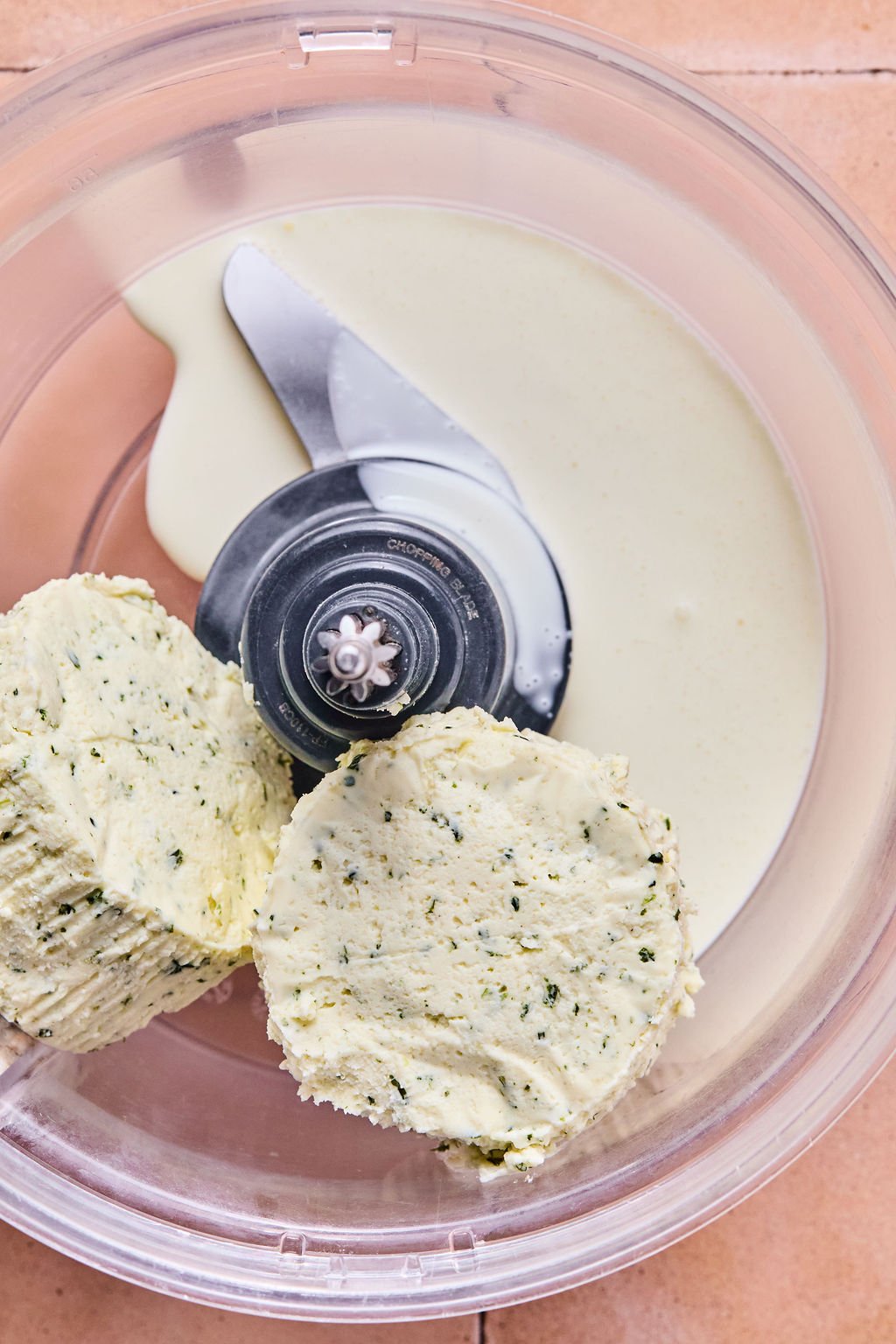 - Soften the Boursin in a food processor: Add the Boursin blocks and heavy cream to a food processor. Pulse in short bursts until the mixture becomes soft and spreadable. Avoid over-processing. You don’t want it to look like liquid, just whipped enough to spread.