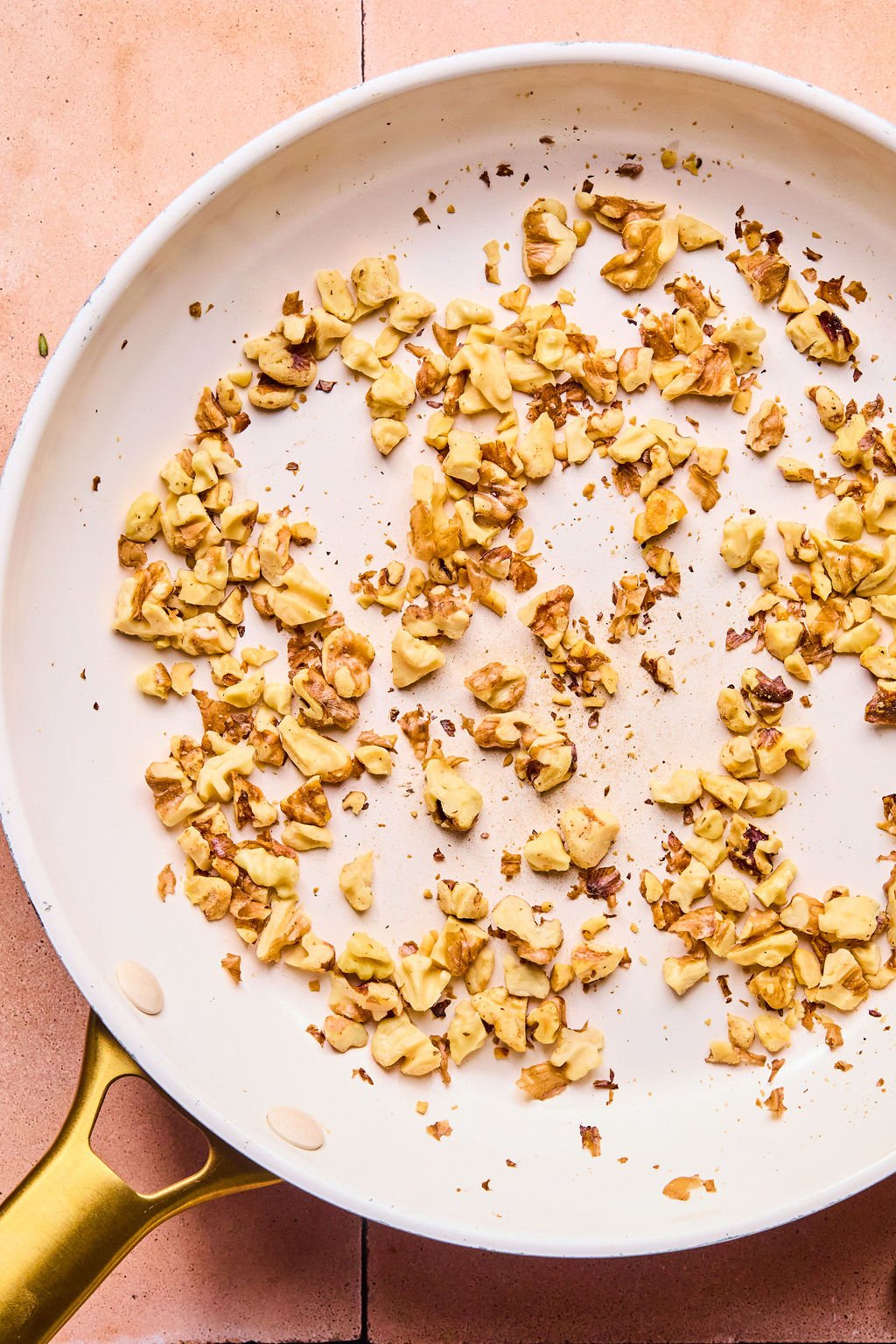 Step 2: Add the chopped walnuts to a dry skillet over medium heat. Cook for 3-4 minutes, stirring often, until fragrant and lightly golden. Remove from heat and let cool.