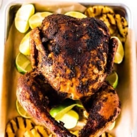 This Jerk Chicken recipe is a well-seasoned whole chicken, drenched with lime and pineapple juice and cooked to a crispy perfection. There is a smoker and oven method included. This recipe is Whole30, Paleo and compliant.