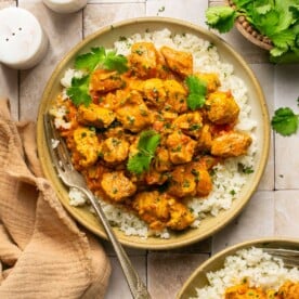 A classic Indian dish made low carb! This Instant Pot Keto Butter Chicken Recipe features tender chicken breast in a deliciously creamy, buttery, tomato-based sauce served over a bed of cauliflower rice. It comes together in 30 minutes and makes a healthy, satisfying meal for those busy weeknights!