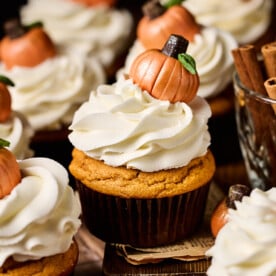 Get ready to bake moist, flavorful, and perfectly spiced Gluten-Free Pumpkin Cupcakes! Finished with a sweet, creamy buttercream frosting, these easy yet elevated cupcakes are the ideal Fall treat for any occasion.