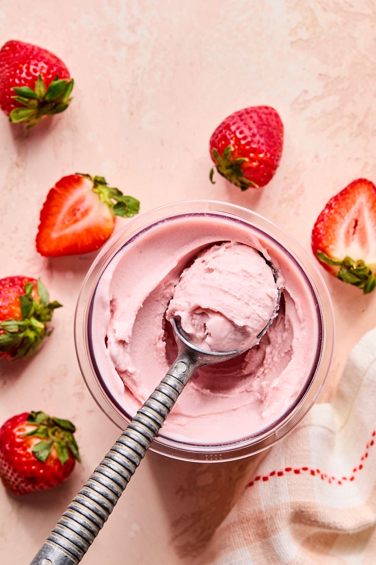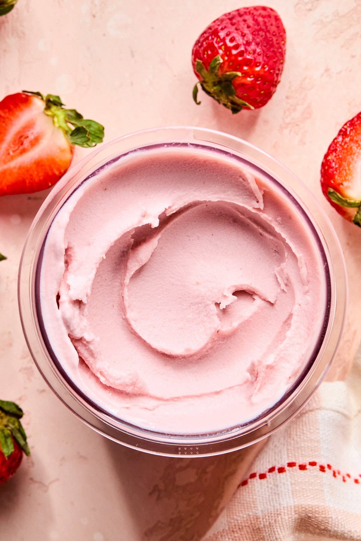 - Store your Ninja Creami strawberry ice cream in the original pint container with the lid screw on tight. Keep it in the coldest part of your freezer on a flat surface. For the best texture, enjoy it within 1-2 weeks.