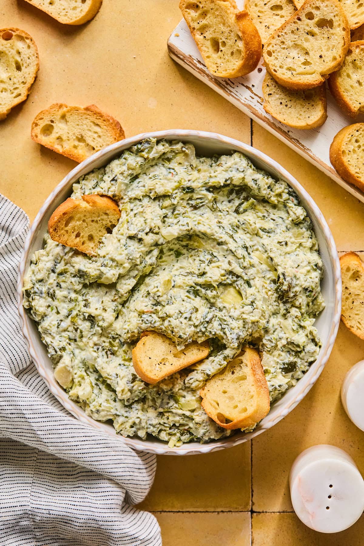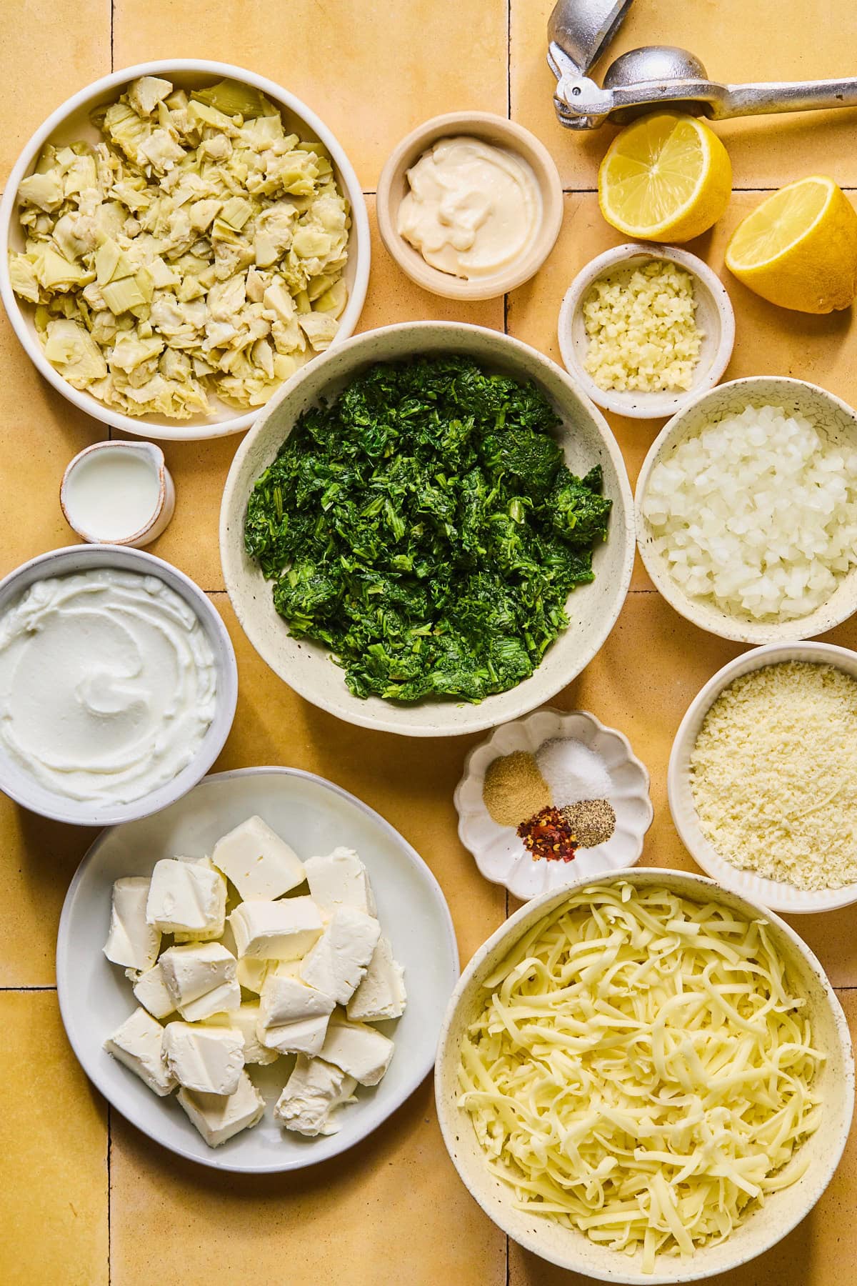 - Frozen spinach: Brings the classic spinach flavor and structure to the dip. Be sure it’s fully thawed and squeezed very dry to prevent excess moisture. Fresh spinach can be used, but it should be sautéed and drained well first.
